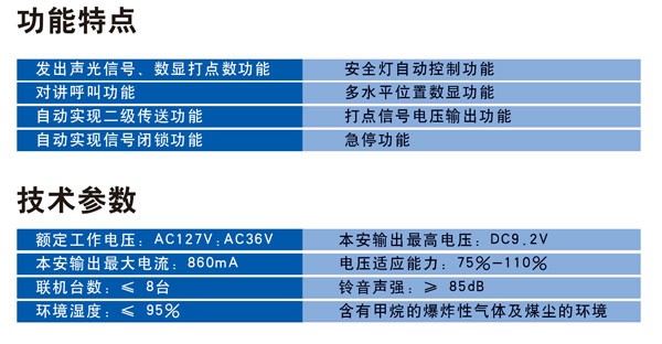 XJH127礦用隔爆兼本質(zhì)安全型通訊聲光信號器結(jié)構(gòu)為隔爆兼本安型設(shè)計(jì)。采用單片微控制器及調(diào)制解調(diào)技術(shù),僅需一條四芯信號電纜,即能實(shí)現(xiàn)發(fā)出聲、光信號、單工對講、自動區(qū)分多水平、二級傳送、安*燈控制等功能。技術(shù)先進(jìn)、設(shè)計(jì)合理、一機(jī)多用。可應(yīng)用于皮帶機(jī)巷和絞車運(yùn)輸巷作為聯(lián)絡(luò)信號使用。